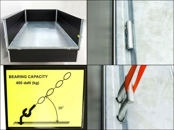 – Bodenplatte: Stahlblech verzinkt auf Siebdruckplatte