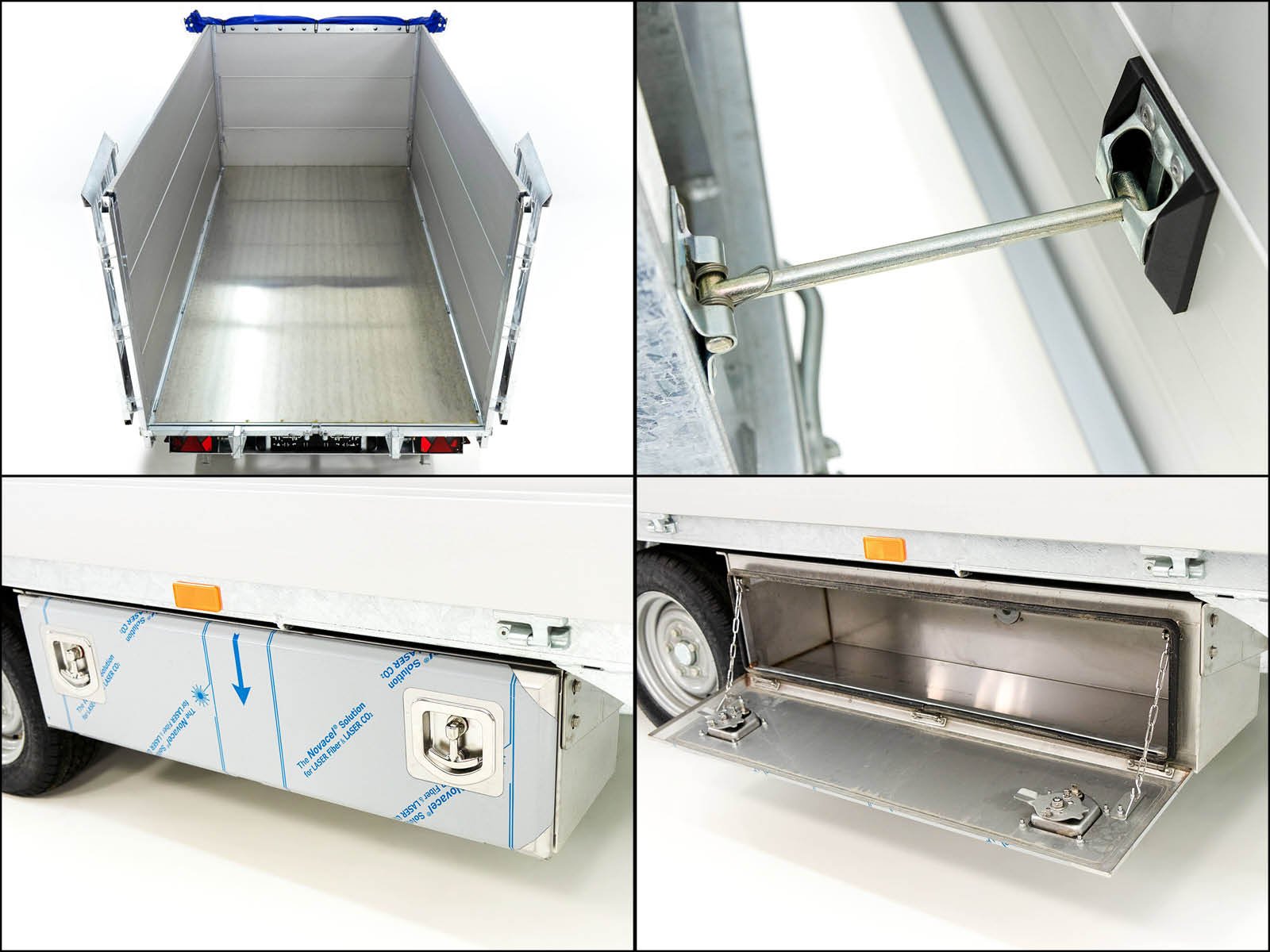 - 8 Zurrösen im Rahmenprofil, 8 Anbindehaken unter dem Fahrgestell