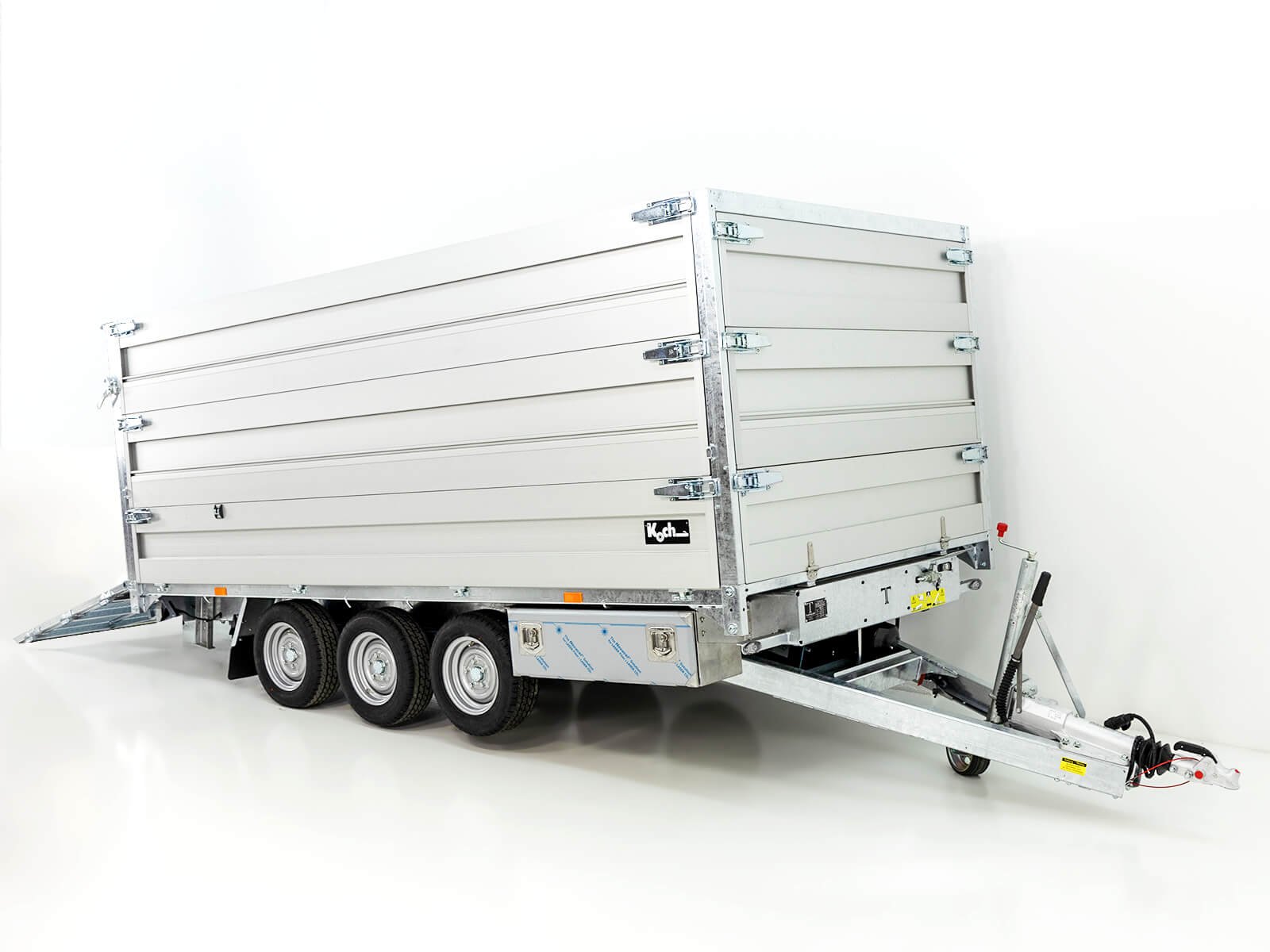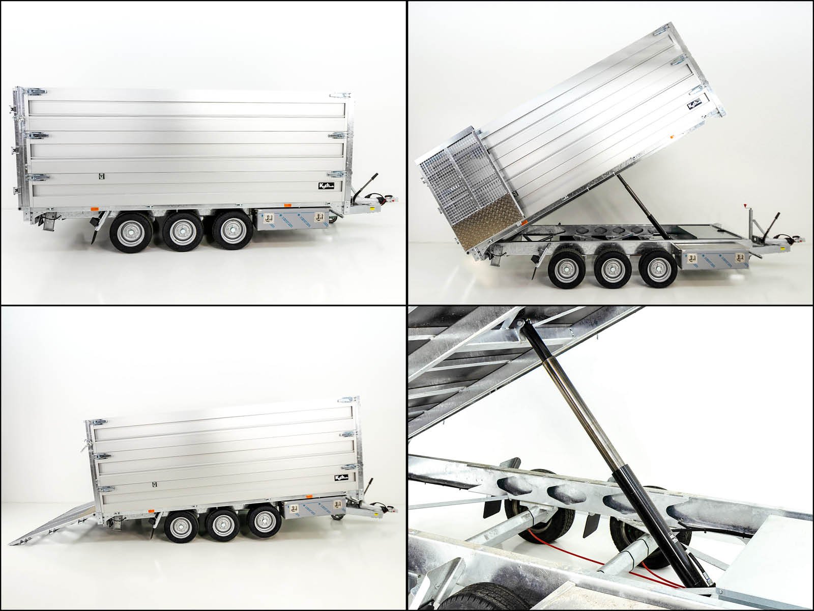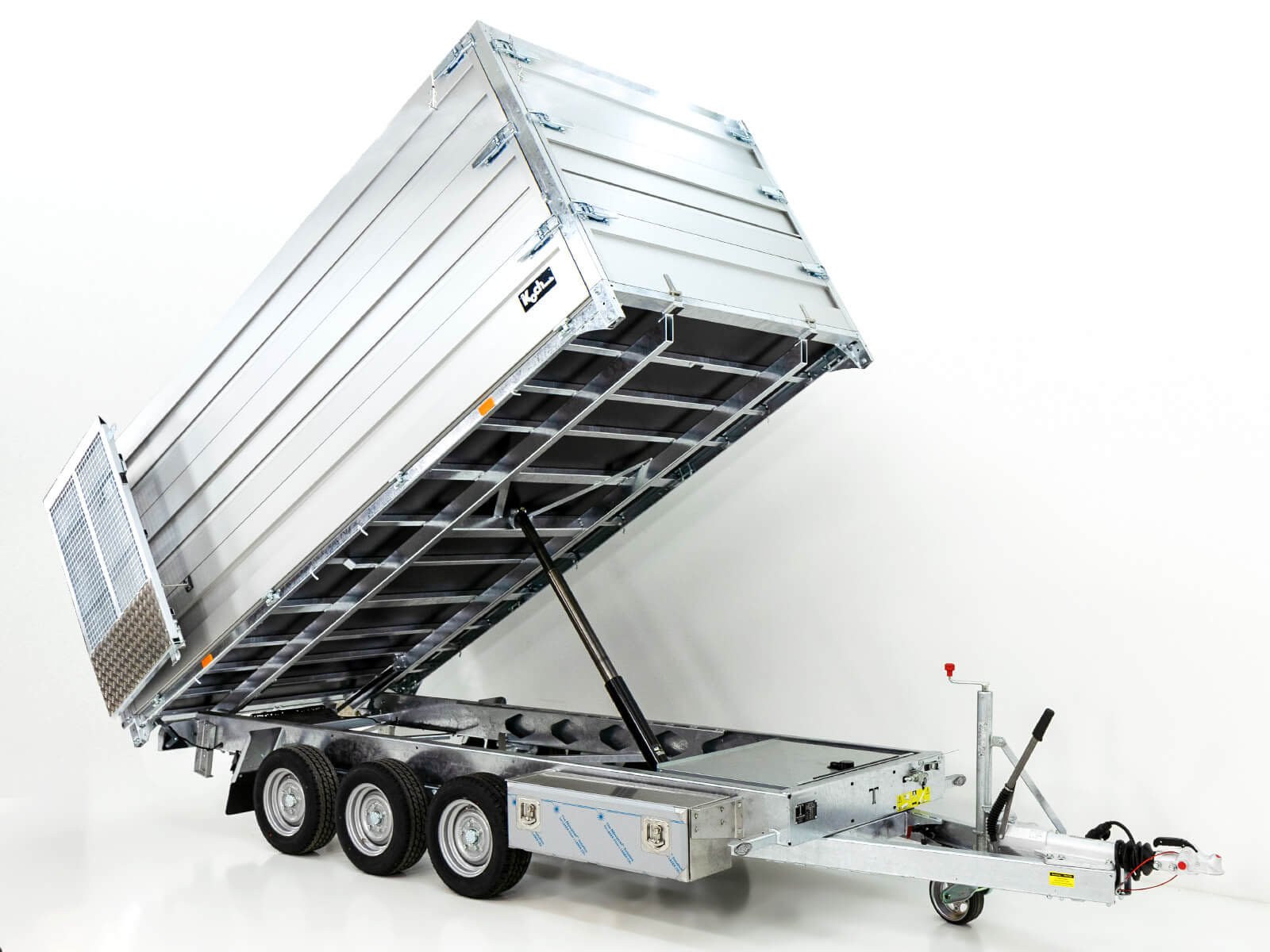 - Maschinen- und Kippanhänger mit ca. 55° Kippwinkel und ca. 16° Auffahrwinkel